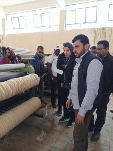 حيث قدم الأستاذ إسلام عيسى مدير الوحدة شرح كامل عن بداية إستقبل الصوف وطرق ومراحل الغزل علي الماكينات داخل هناجر المخصصة للصوف .